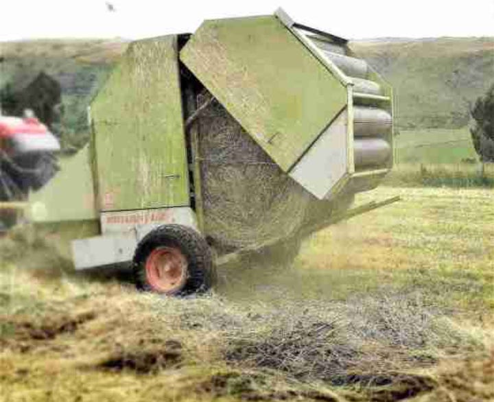 Each bale is the equivalent of a whole stack of square bales and there’s no stacking or stooking to do. We usually leave them in the paddock to settle for a day or two, then use spikes or clamps attached to the tractor arms to pick them up and cart them off to the shed.