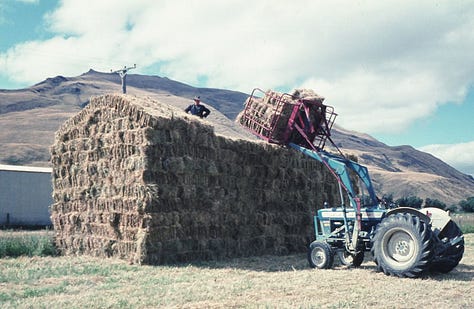 A few days later, they’d pitchfork the hay into huge piles called rucks.