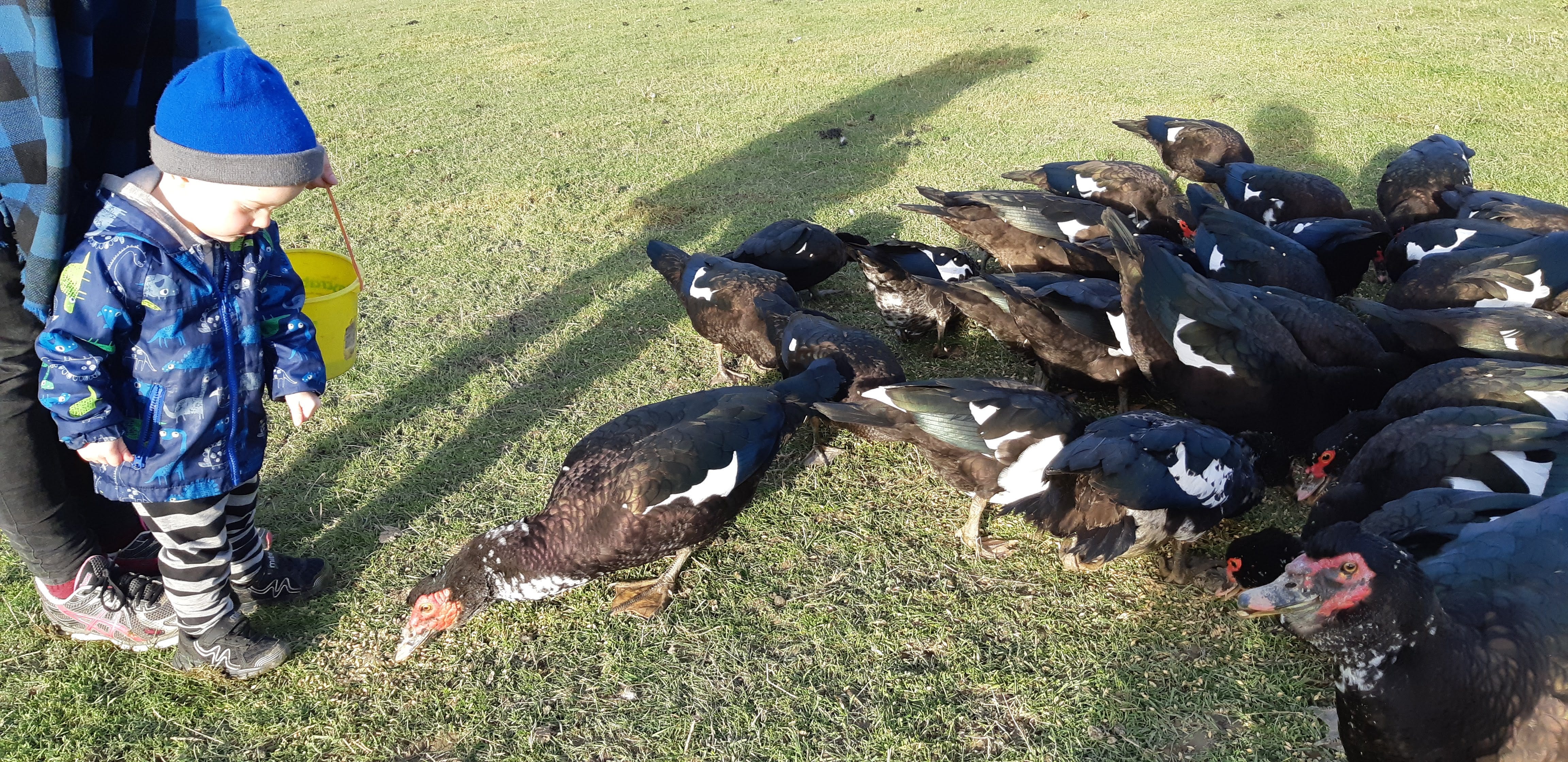 Feeding the ducks has been one of our grandchildren’s favourite farm activities ever since they were old enough to throw a handful of grain.